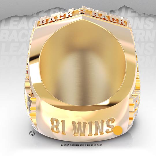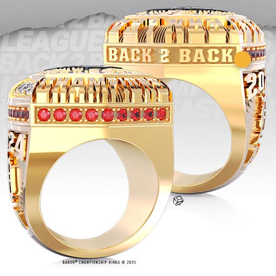 - The side features the phrase ‘BACK-2-BACK’, commemorating the team’s consecutive titles, and is positioned on the top edge of each ring.
