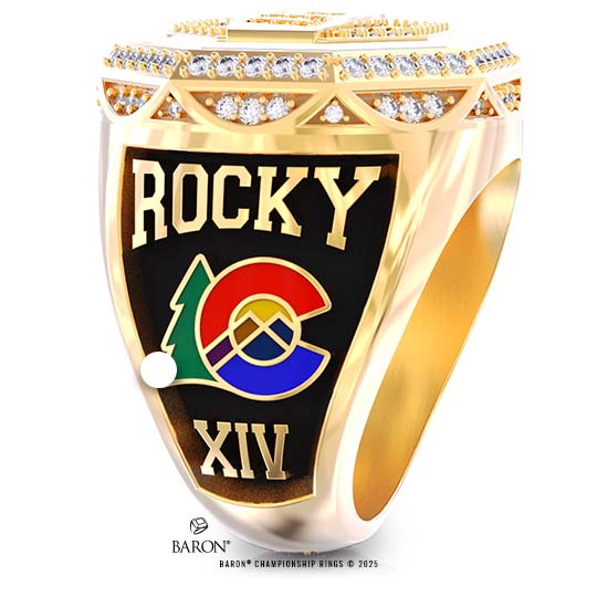 - The Nickname “Rocky” and a bold Colorado Pride logo honor roots, accompanied by Roman numerals that chronicle the years of battles before achieving Champion status.